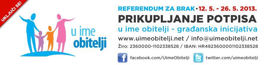Brak i obitelj osnovne su jedinice društva kakvo poznajemo. Ove ključne institucije podvrgnute su velikim iskušenjima kojima se želi promijeniti njihova struktura: Brak = Žena… Read More »Podrška građanskoj inicijativi “U ime obitelji”